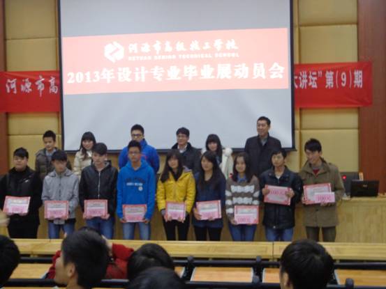 1月13日晚,計算機(jī)教學(xué)部在培訓(xùn)樓講學(xué)廳召開設(shè)計專業(yè)畢業(yè)展動員會,并為2013年新年賀卡設(shè)計比賽獲獎?wù)哳C獎。