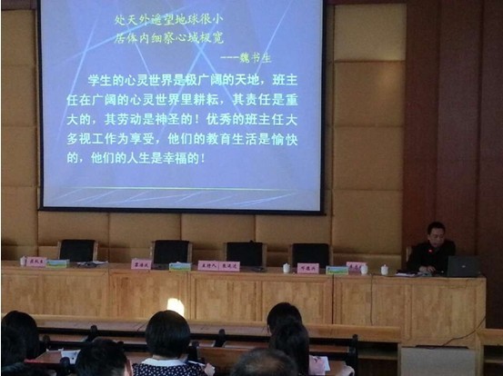 張海鋒副校長以著名教育家魏書生的一句名言——“處天外遙望地球很小,居體內(nèi)細察心域極寬”引出講座主題。他認為,學生的心靈世界是極廣闊的天地,班主任在廣闊的心靈世界里耕耘,其責任是重大的,其勞動是神圣的。班主任作為學生最信賴的人生導師與成長伙伴,不僅是學生人格的榜樣、道德行為的示范者,更是學生健康成長的導師,是影響學生人生命運的人。緊接著,他分析了技工學校班主任工作現(xiàn)狀與存在的問題,并提出了解決對策——即實現(xiàn)班主任專業(yè)化發(fā)展,把班主任由教書的“副業(yè)”變?yōu)橛说?/span>“主業(yè)” 。