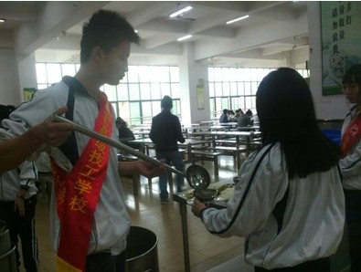 活動(dòng)當(dāng)天,學(xué)生志愿者利用午餐時(shí)間幫助飯?zhí)霉ぷ魅藛T清理飯?zhí)眯l(wèi)生、分發(fā)食物和回收餐具。雖然工作非常簡(jiǎn)單,但是志愿者卻極其認(rèn)真負(fù)責(zé),他們用樸實(shí)的行動(dòng)傳遞了雷鋒精神。