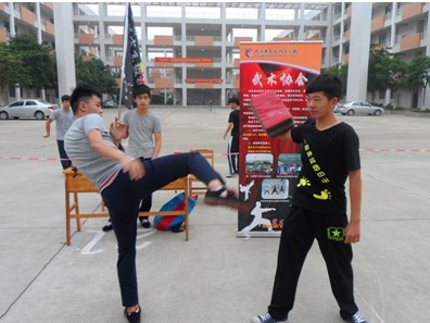 4點(diǎn)40分,嘻哈協(xié)會(huì)的一支勁歌熱舞拉開了活動(dòng)的序幕。武術(shù)協(xié)會(huì)也“不甘示弱”,向觀眾們展示了他們平時(shí)訓(xùn)練的科目:自由搏擊、摔跤和各種武術(shù)器材演示,讓現(xiàn)場(chǎng)的觀眾都躍躍欲試。隨后,讓我們把鏡頭轉(zhuǎn)移到一張墨色生香的桌子上,只見藍(lán)韻書畫社的同學(xué)正熟練地?fù)]灑著毛筆,他筆下的那些蒼勁有力的文字讓人不禁感嘆中國文化的博大精深……場(chǎng)面最壯觀的當(dāng)屬輪滑協(xié)會(huì)帶來的精彩表演,一個(gè)個(gè)驚險(xiǎn)刺激的輪滑動(dòng)作,仿佛要把整個(gè)廣場(chǎng)“吞噬”一般,把觀眾的心都“揪”起來了。