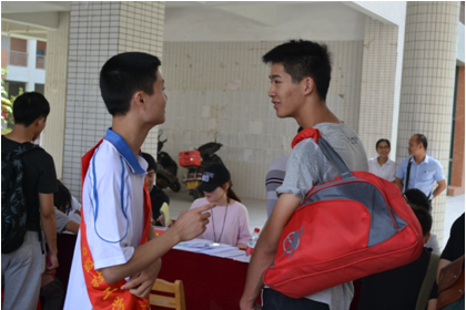 915日,2014級高級班的莘莘學子背負行囊,懷揣夢想和希望踏進了河源市高級技工學校。一張張新鮮好奇的面孔為校園又注入了新的激情和活力,高技能人才管理中心也因新生的到來而喜氣洋洋、熱鬧非凡——校道上彩旗飄舞,熱情洋溢的歡迎條幅迎風招展、一路延伸;新生報到接待中心,精神抖擻的迎新工作人員各就各位,報到各環(huán)節(jié)井然有序;身著統(tǒng)一服裝的迎新志愿者們帶領新生及家長穿梭于咨詢處、注冊處、飯?zhí)?、學生宿舍,忙碌的身影遍布校園每個角落……