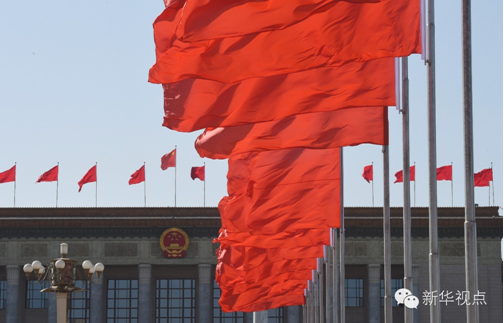 天安門廣場紅旗飄飄。(2016年3月10日攝)新華社記者張領攝