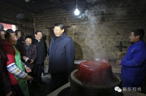 2016年2月2日,習近平在江西省井岡山市茅坪鄉(xiāng)神山村的張成德家看望慰問。新華社記者蘭紅光攝