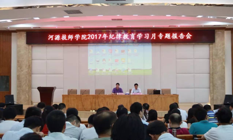 8月29日下午,召開2017年紀(jì)律教育學(xué)習(xí)月活動(dòng)推進(jìn)會(huì)。學(xué)院黨總支書記、院長黎海波同志傳達(dá)了中央、省委、市委關(guān)于推進(jìn)全面從嚴(yán)治黨,推進(jìn)“兩學(xué)一做”學(xué)習(xí)教育常態(tài)化制度化的要求和市紀(jì)委、市人社局的工作部署。